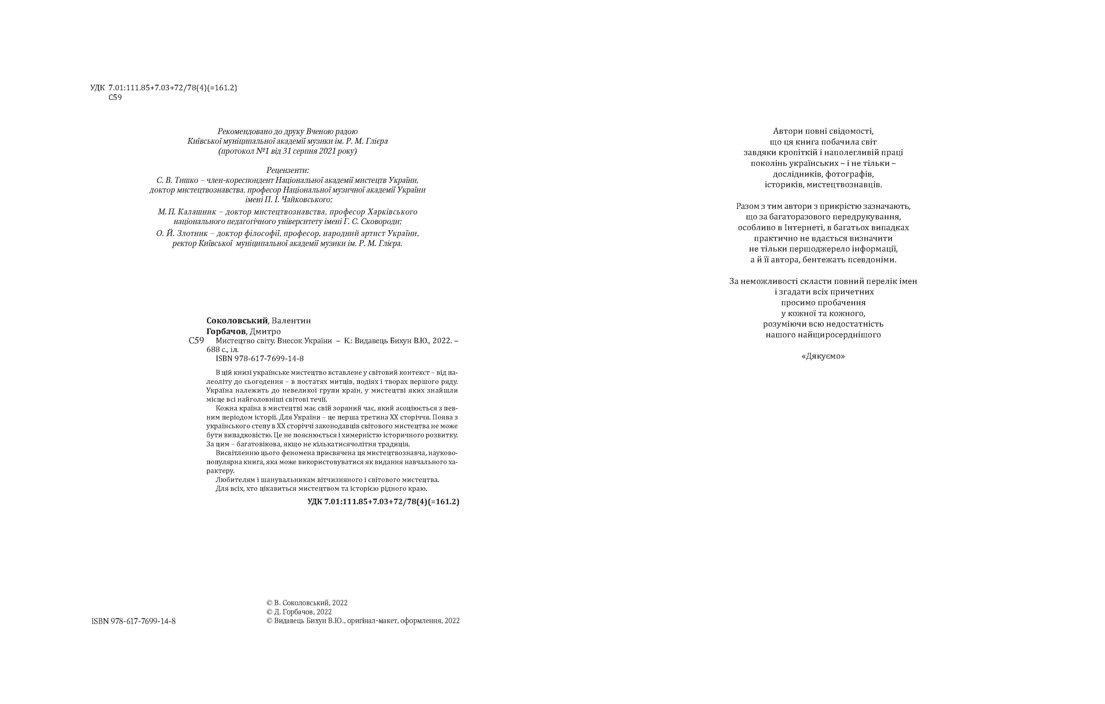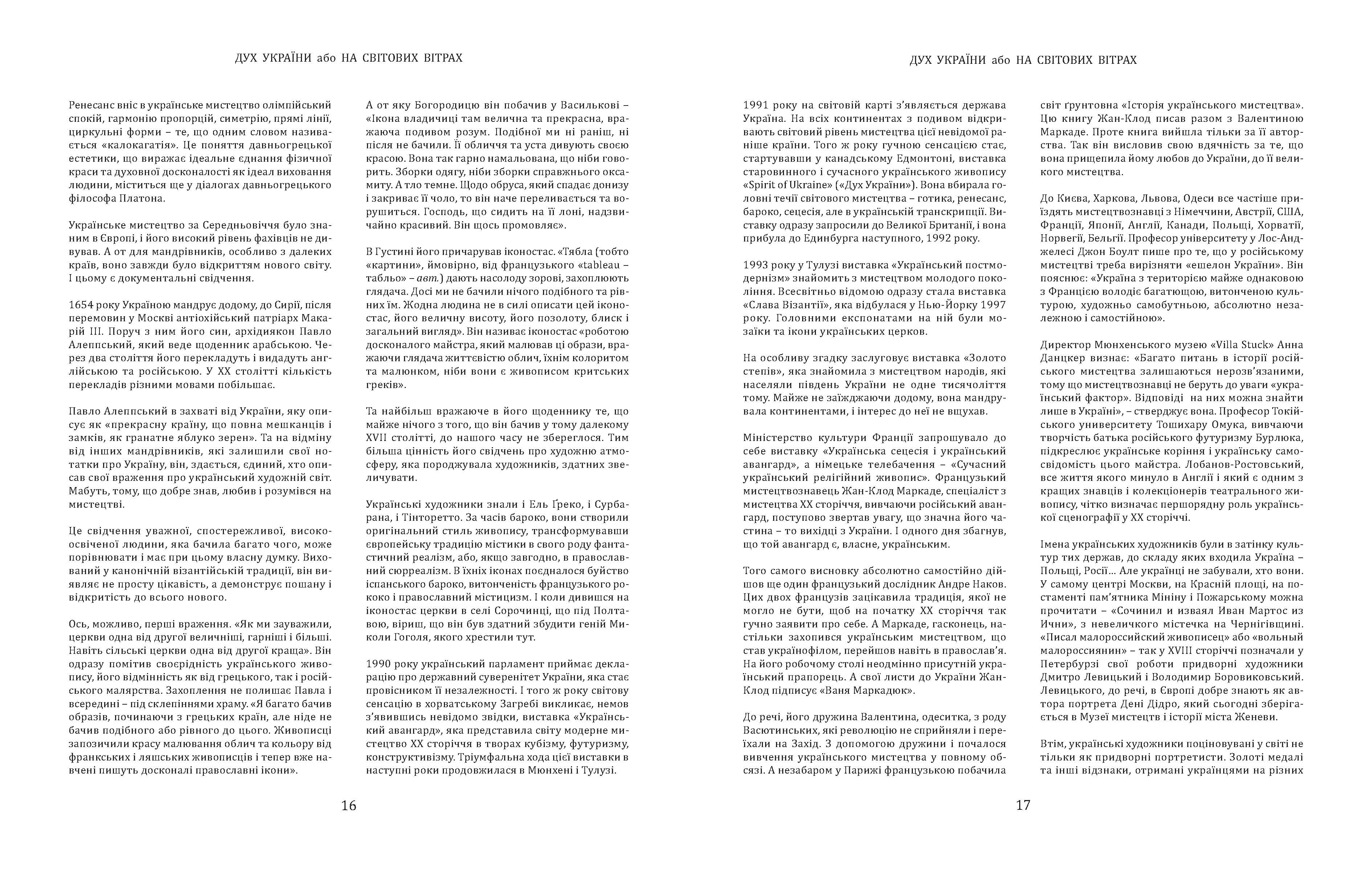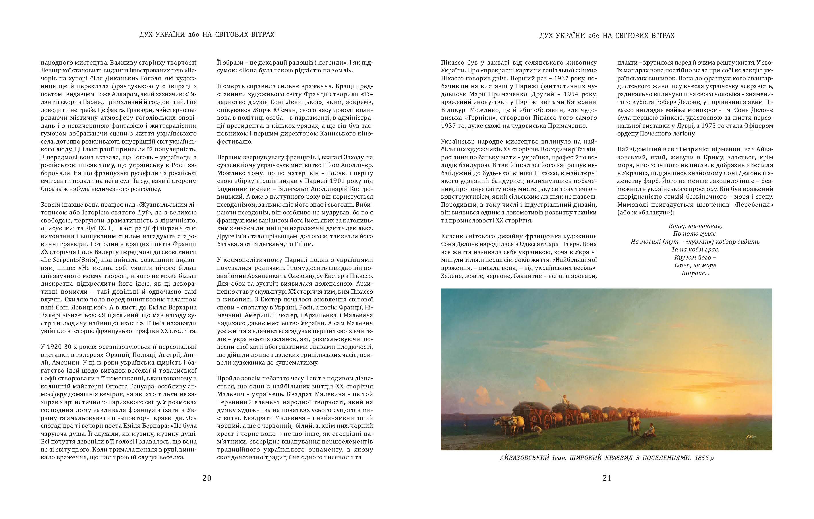 «Книга Мистецтво світу. Внесок України складається з текстів, в яких на тлі історії йдеться про події, явища, людей українського художнього світу, спадщина яких сьогодні визнана світом.